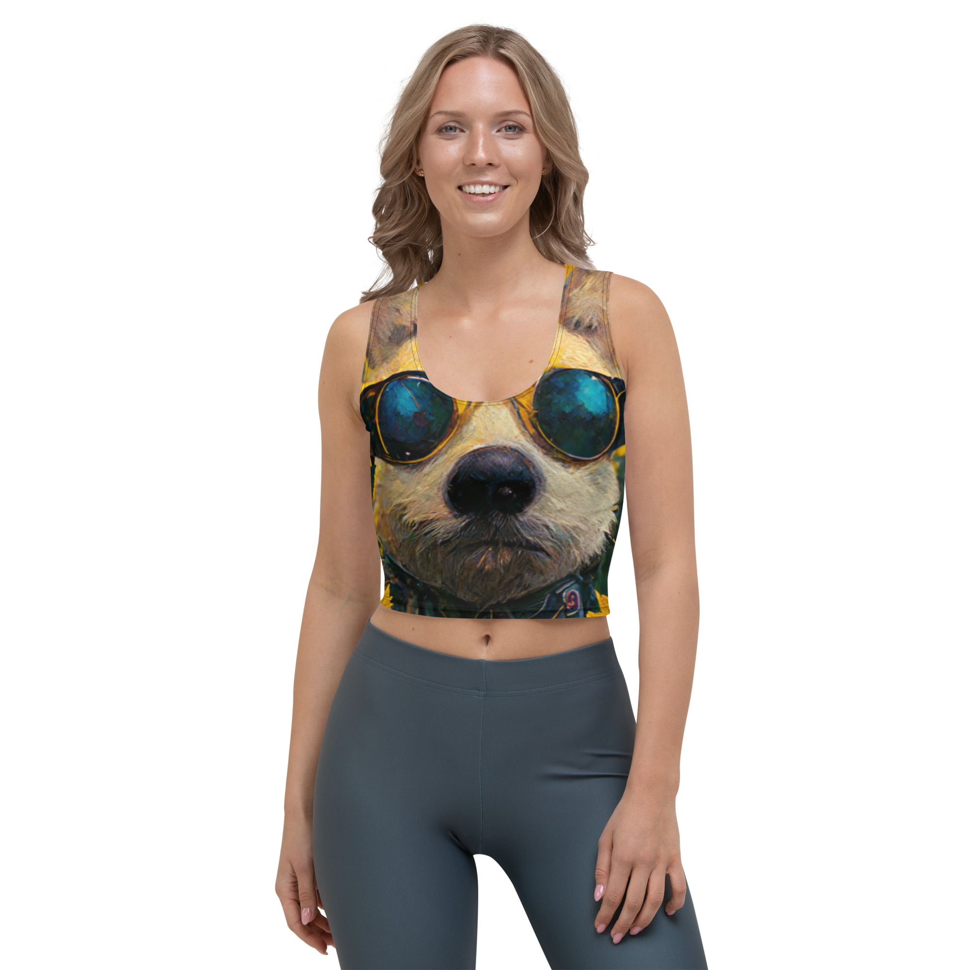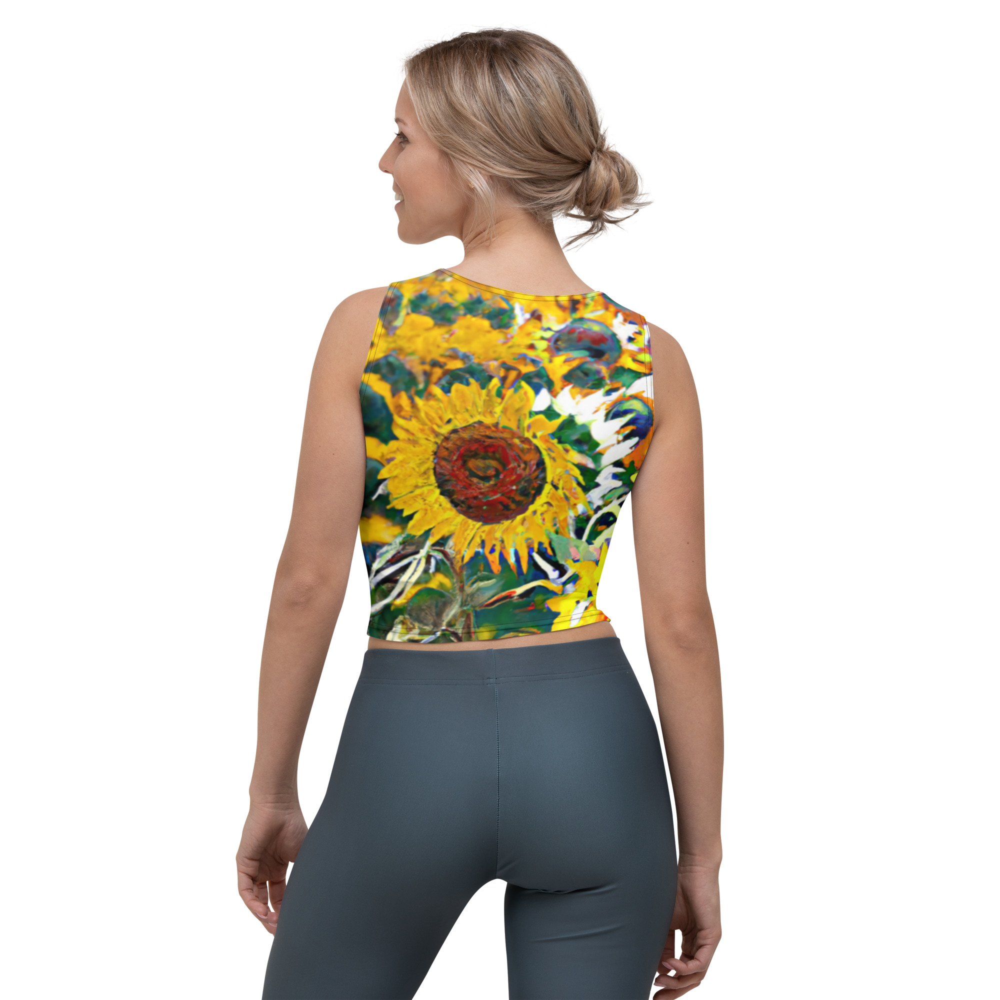 Look fabulous in an all-over printed, body-hugging crop top.